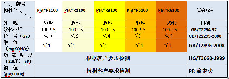 Pht?-R1100、Pht?-2100、Pht?-3100、Pht?-5100、、Pht?-6100精C5系列石油樹脂是適用于熱熔型路標漆的改性石油樹脂。它能增強涂料的韌性、硬度及附著力,并形成平滑的漆面,而且通過添加助劑,使樹脂在四季中始終處在一種穩(wěn)定的狀態(tài),并和松香類樹脂、萜烯類樹脂、碳九石油樹脂混溶性佳。在高檔油漆復配中,可使油漆漆膜形成耐水、耐酸耐堿、耐紫外線、耐化學品的特性,并使外觀光亮度及干燥性都有明顯改善,其中Pht?-R1100、Pht?-R2100經過氫化或半氫化的碳五石油樹脂,外觀顏色水白色,200度3個小時熱穩(wěn)定性不變色。是生產更高檔品質的熱熔路標涂料的助劑,性能更佳。